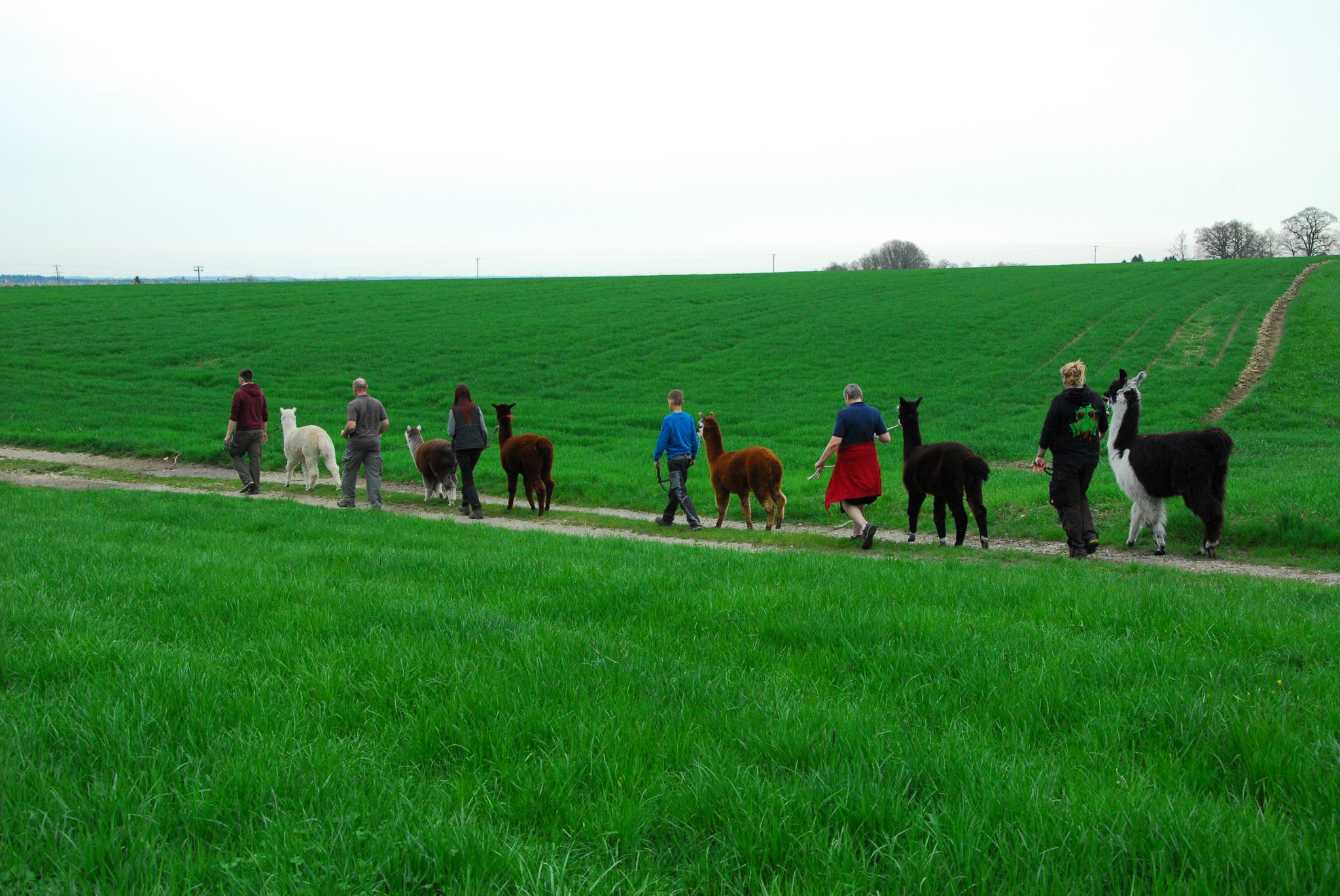 Für unsere offenen Wanderungen kannst Du Dir einzelne Plätze buchen und wanderst dann mit uns und anderen Alpaka- und Lamaliebhabern in einer Gruppe.