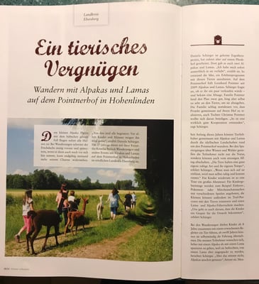 Am 03.09.2018 gab es einen ganzseitigen Bericht über unseren Hof in der Ebersberger Zeitung! Wir haben uns sehr gefreut über die tollen Bilder und den authentischen Bericht von unseren Alpakas und Lamas.